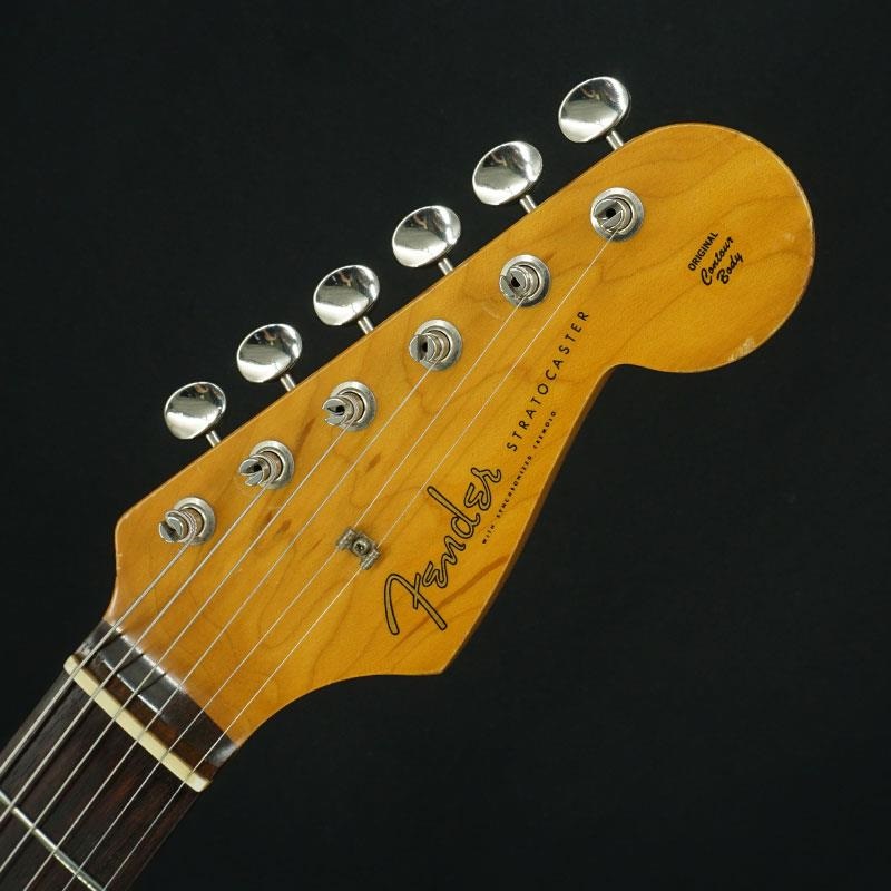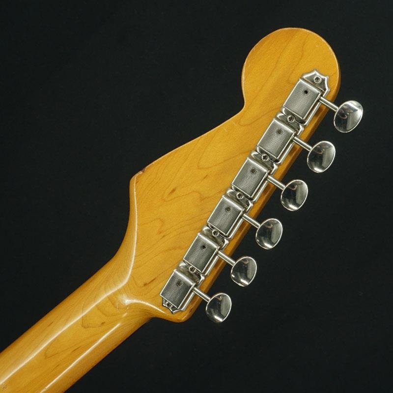 当個体状態といたしましては、ポットが国産のものに、コンデンサーがオレンジドロップに交換、ブリッジもFenderではあると思われるもののゴールドのパーツに交換されており、ボディ全体に経年相応のスレキズ、弾きキズ、色やけ、塗装欠け、うち傷に著しいハードウェアのくすみさびが御座いますかなりのプレイヤーズコンディションとなっております。しかしフレットは6割から7割程度の高さを残し、ネックコンディションやトラスロッド、電装系含め演奏面で問題はございません!まだまだ末永くお付き合いいただける1本としてお迎えいただけます。成熟したジャパンヴィンテージの実力!この機会に是非ご体感ください!