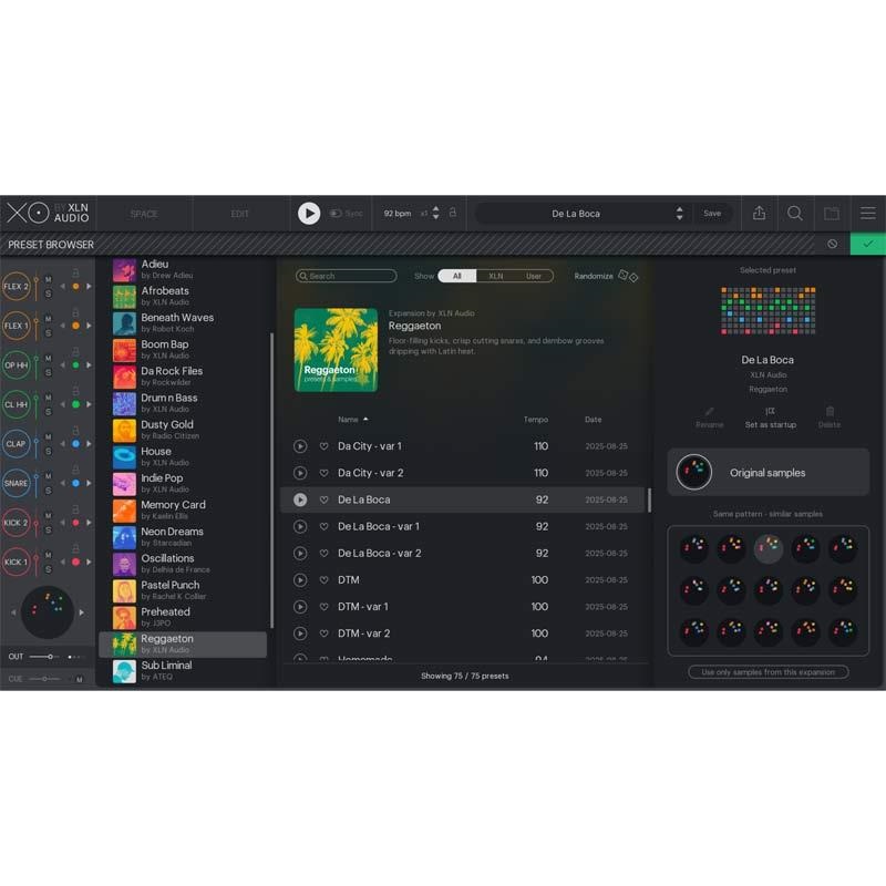 XOをお気に入りのサンプルパックから近隣の類似サウンドに切り替えることで、無限のビートバリエーションを探求できます。