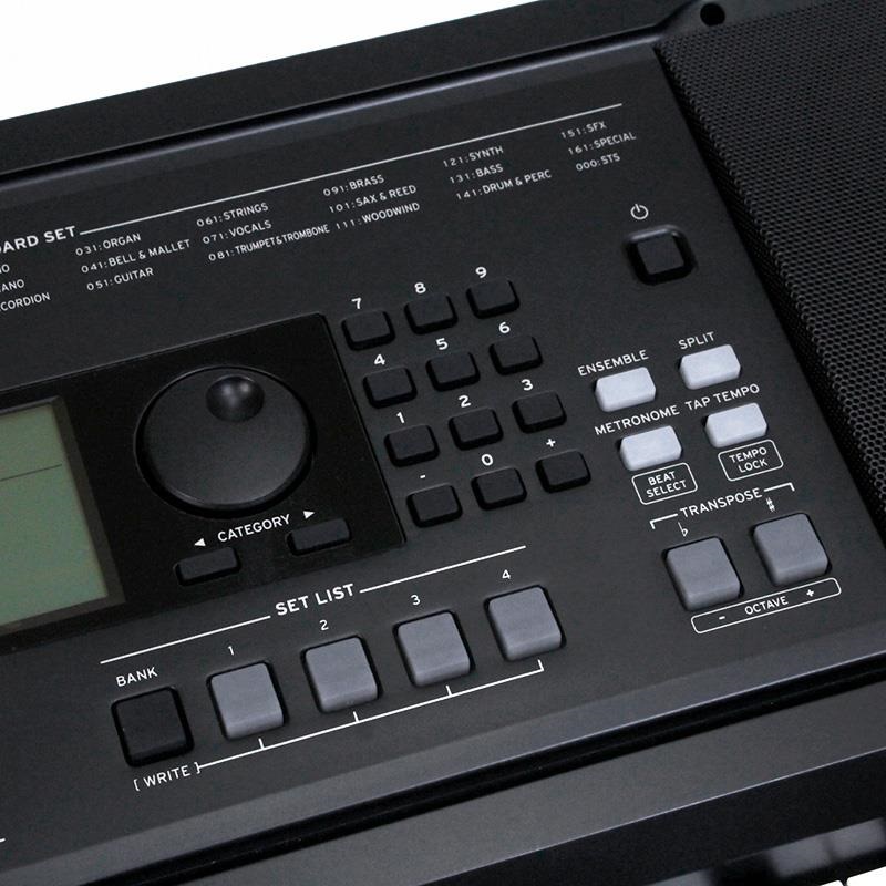 スケール11タイプ(ユーザー含む)コントロール電源ボタン、ボリューム・ツマミ、ジョイスティック、スタイル/[ミュージック・スタイル] ボタン、ソング/[デモ・ソング] ボタン、キーボード・セット/[STS] ボタン、グランド・ピアノ・ボタン、パート・ミュート/[サウンド・セレクト] セクションの各ボタン、セッティング/[エフェクト] ボタン、メディア・ボタン、スピーカーEQ/[スピーカー・オフ] ボタン、シフト・ボタン、アンサンブル・ボタン、スプリット・ボタン、メトロノーム/[ビート・セレクト] ボタン、タップ・テンポ/[テンポ・ロック] ボタン、トランスポーズ♭、♯/[オクターブ-、+] ボタン、ダイヤル、カテゴリー・ボタン、数値ボタン、+ボタン、-ボタン、スタイル/ソング・セクションの各ボタン、セット・リスト・セクションの各ボタンセット・リスト10バンクx 4メトロノームテンポ、拍子、音量テンポ30~240トランスポーズC(-12)~ C(0)~ C(+12)チューニング427.5 ~ 452.9 Hz