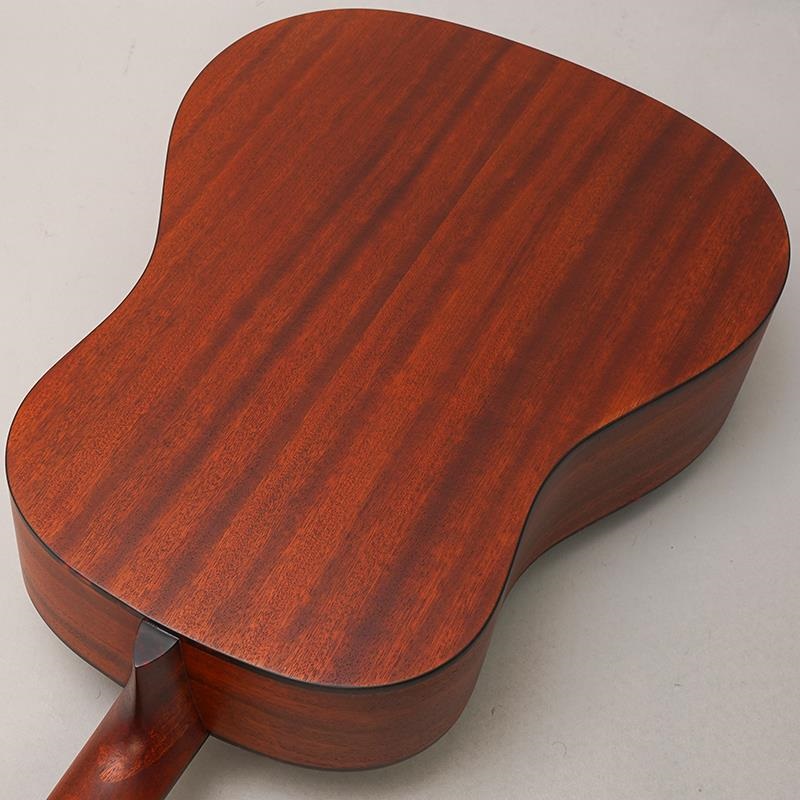 シトカスプルース単板トップ、豊かなミッドレンジが特徴のサペリ単板サイドバック、マホガニーネックにエボニー指板という本格的な材料スペックを採用。