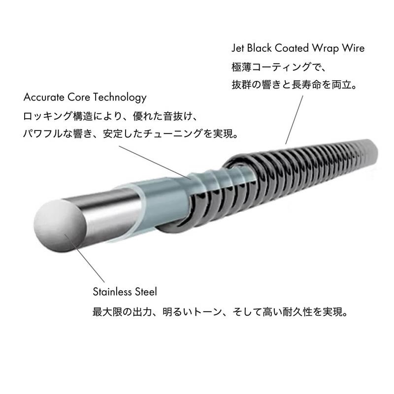 ACTが巻線の密着性と位相の整合を高め、低音弦まで輪郭を維持。さらにB/E/A弦はテーパー加工を施し、最大37インチ相当のスケールでB弦の潜在力を引き出します。