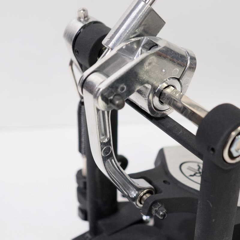 ベースプレート部及びフレーム幅を小型化し、ダブルフットペダルのサブペダルとハイハットスタンドとを、より密着した位置にセッティング可能に。また、ベースプレートの形状もフラット仕様で安定性が向上。