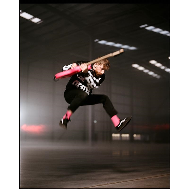 ショーンのシグネイチャーモデル、Pro-Mod San Dimas Style 1 HH HT Mは、耐久性のあるネオンピンク仕上げに、ブラックのピックアップカバー、ブラックハードウェア、そしてFender Stratヘッドストックといった仕様でまとめ上げられています。
