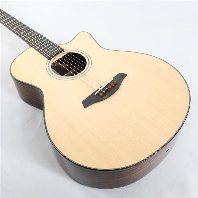 トップ材はAAAグレードのシトカスプルース、サイドバック材はAAグレードのインディアンローズウッドを採用。