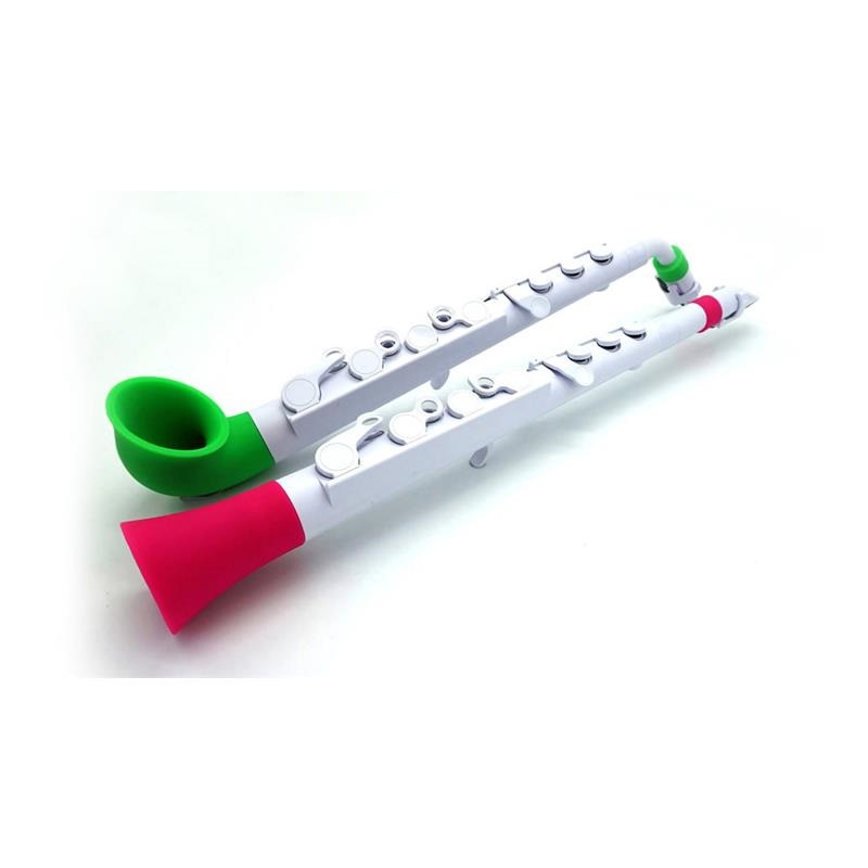 jSAX は一般的なサックスの様なカーブドパーツが付属しており、4歳から14歳くらいまでのお子様の使用に適していますが、大人の方が jSAX を使用する際に、演奏性を向上させるためのストレートオプションをご用意しております。