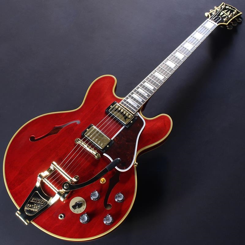 ピックアップはアンポッテッド仕様のCustombucker Alnico IIIを採用し、高い解像度を備えることで立体的な音像を実現。キレがよくバイト感のある明瞭なサウンドキャラクターと本機の生鳴りがブレンドされ、他では味わえない絶品サウンドをアウトプットしてくれます。ビグスビーマウントの独特の響きに、エボニー指板のタイトさが加わりまさにロックンロールが一番似合うセミアコといっても過言ではないと思います。もちろんクリーンサウンドも、335に比べてハイに艶のある最高のサウンドです。ナッシュビルのカスタムショップファクトリー生産といえばそのクオリティは言わずもがな、セミアコらしい確かな生鳴りも格別です。