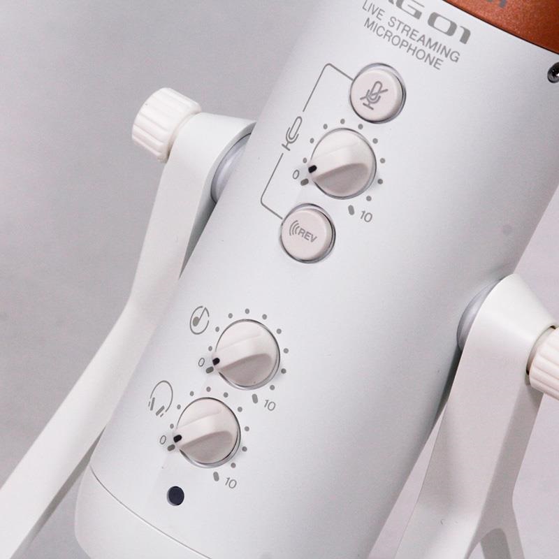 ライブ配信時にはとっさに音声をコントロールしたいシーンが多くあります。AG01の厳選された物理操作子(ノブやボタン)は、それらの要望に、迷うことのないシンプルな操作体験を提供することで応えます。