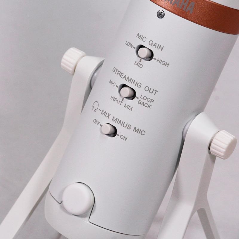 AG01は、コンデンサーマイクによる音声入力に加え、miniステレオライン入力端子とアップグレードされたスマートホン用の4極ミニ入出力(TRRS)端子が搭載されています。もちろん従来機と同様にLoopbackモードでUSBで接続された機器からの音声を配信音に加えることも可能です。これらにより、本来であればミキサー機器を別途用意しなければ実現できなかった多彩な配信スタイルをこのマイク型製品一本でカバーすることができます。