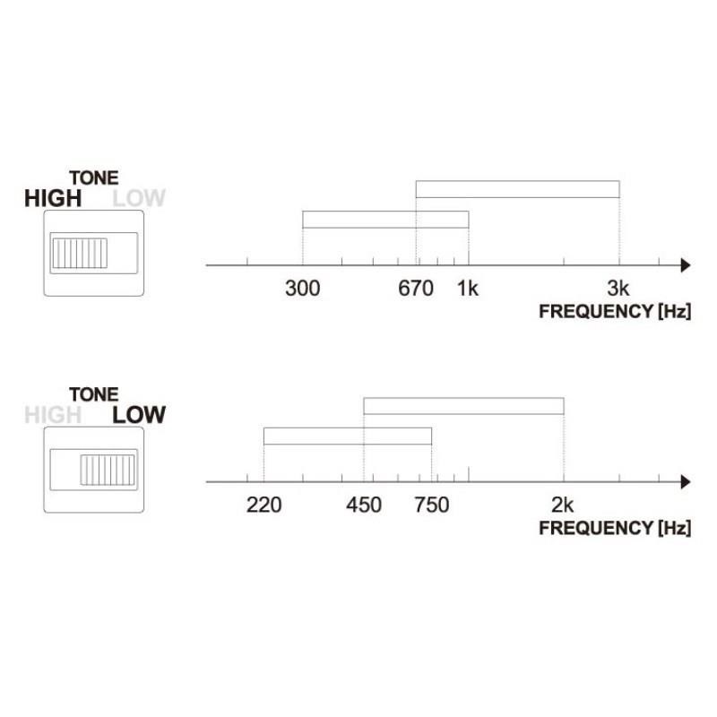 さらに、その2つの周波数帯のバランスの調節や、可変範囲を低音寄り/ 高音寄りモードに選択でき、シンプル