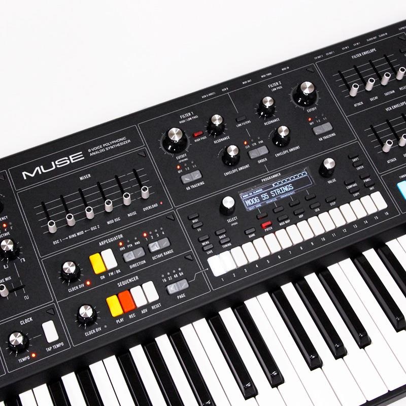 女神(Muse)に出会う─8ボイス・アナログ・バイティンブラル・ポリフォニック・シンセサイザー─5年以上にわたる夢とデザインへの探求、そして情熱が結実した最高傑作です。Moogがこれまで歩んできた豊かな歴史に基づき、そしてまた同時に、大胆に未来を見据えてデザインされた、直感的でパワフルなシンセサイザーです。スタジオでもステージでもセンターピースに輝くこのシンセサイザーには、2基のVCO、モジュレーションVCO、デュアルVCF、ステレオVCAなどを備えた8つのアナログボイスが搭載されており、そのすべてが認識しやすく、アナログならではのダイナミックな音質を誇ります。