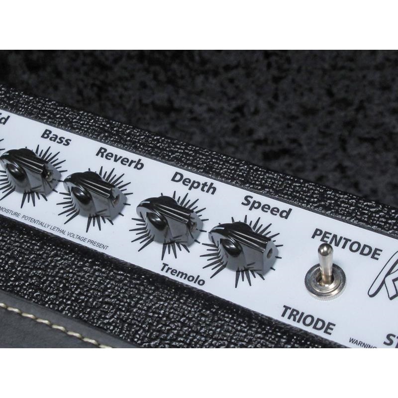 5881パワーチューブ2本を使用した最大(PENTODE)28ワット出力、TRIODE切替で14ワット出力にパワーダウン可能で、PENTODE 28Wattではツインやプロの様な甘く適度なコンプレッションが掛かったクリーンを、TRIODE 14Wattではデラックスの様なドライブ感が付与されます。