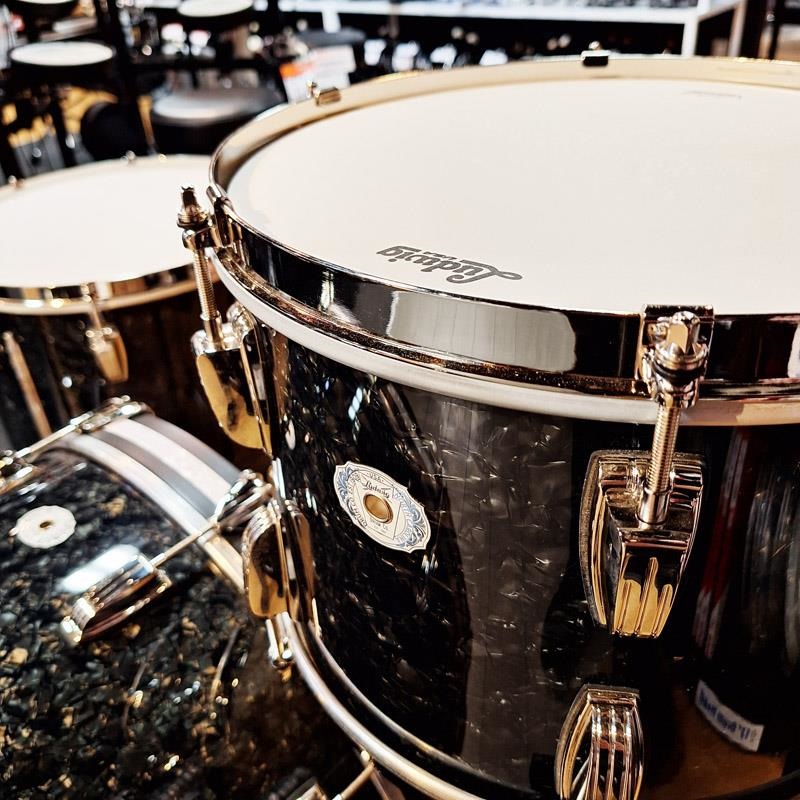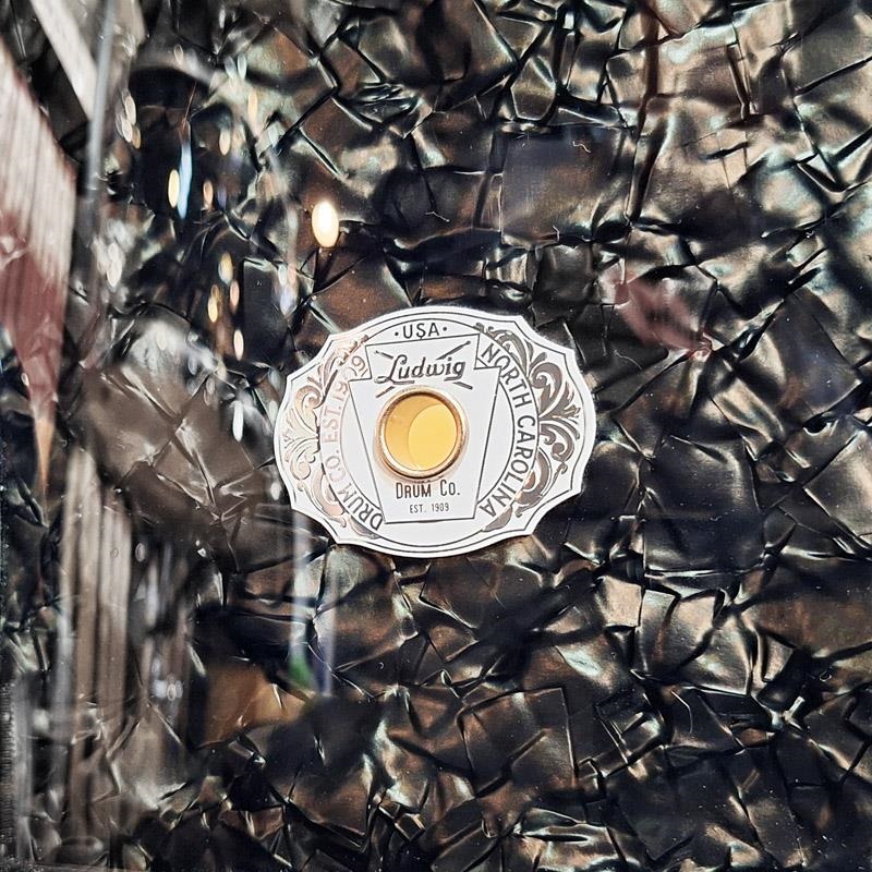 エボニー・パール仕上げにホワイト・マリン・パールのバスドラム・フープ・インレイがアクセントを添え、