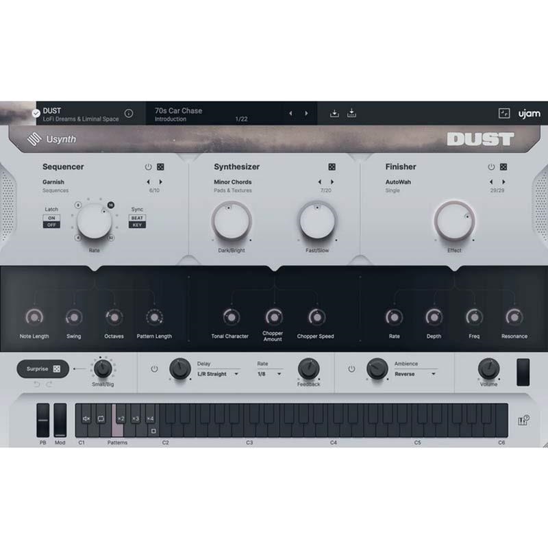 Usynth DUST は、時間がゆっくりと積み重なったような美しく埃をかぶった音 をテーマにしたローファイ系シンセサイザー。アコースティック楽器やエレクトリック楽器の素材に、あえて劣化、歪み、揺らぎ、フィルター処理を加えることで、懐かしさ・温かみ・不完全さから生まれる魅力 を丁寧に再現します。デジタル環境では得がたい柔らかい質感や、ほのかなノイズが混ざる時間の匂いをまとったサウンドは、アンビエントやチル、ローファイ・ヒップホップ、インディーポップなど、空気感を大切にする音楽に最適です。
