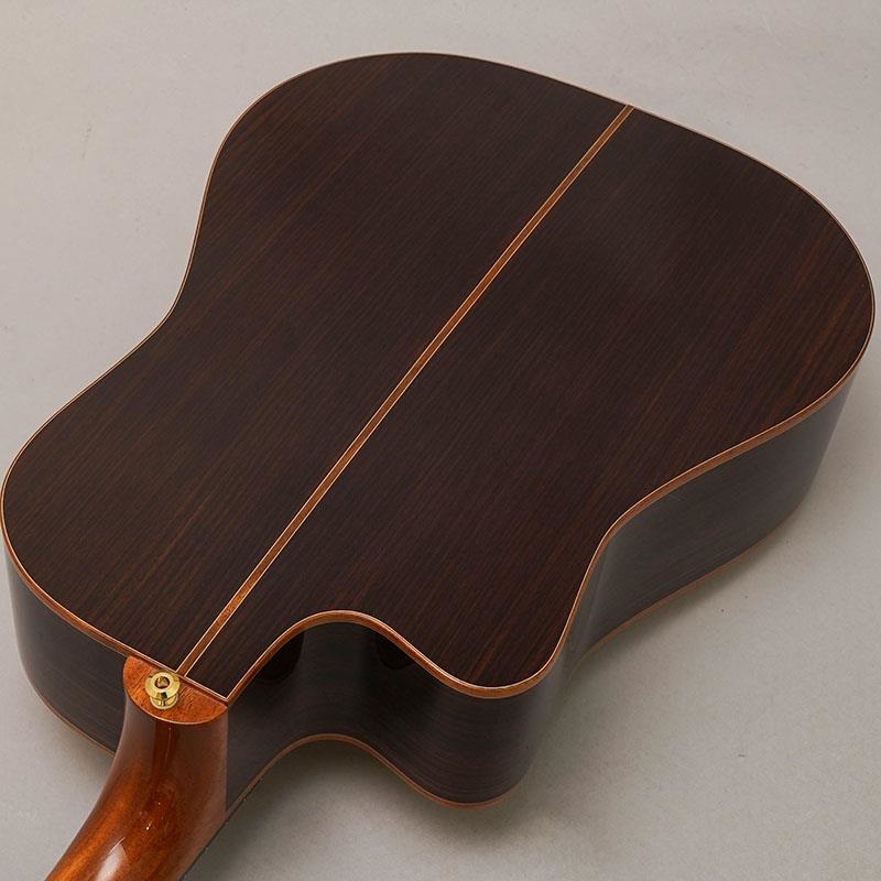 最高級AAAグレードのスプルーストップに素晴らしい木目のインディアンローズウッドサイドバック、マホガニーネック、エボニー指板&ブリッジという、アコースティックギターの王道でありながらメイトンとしてはなかなか珍しい材料構成。