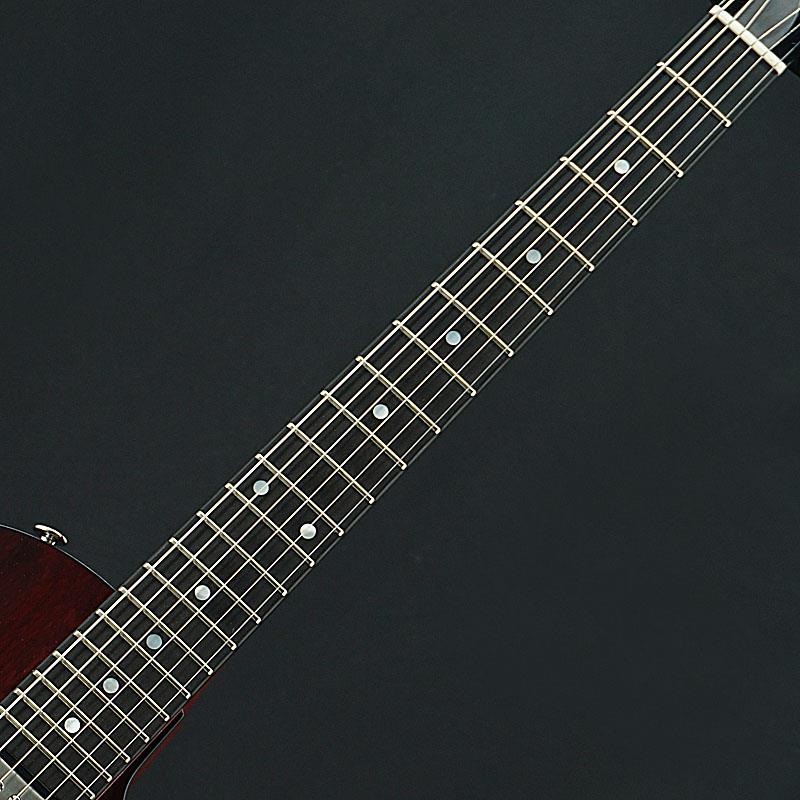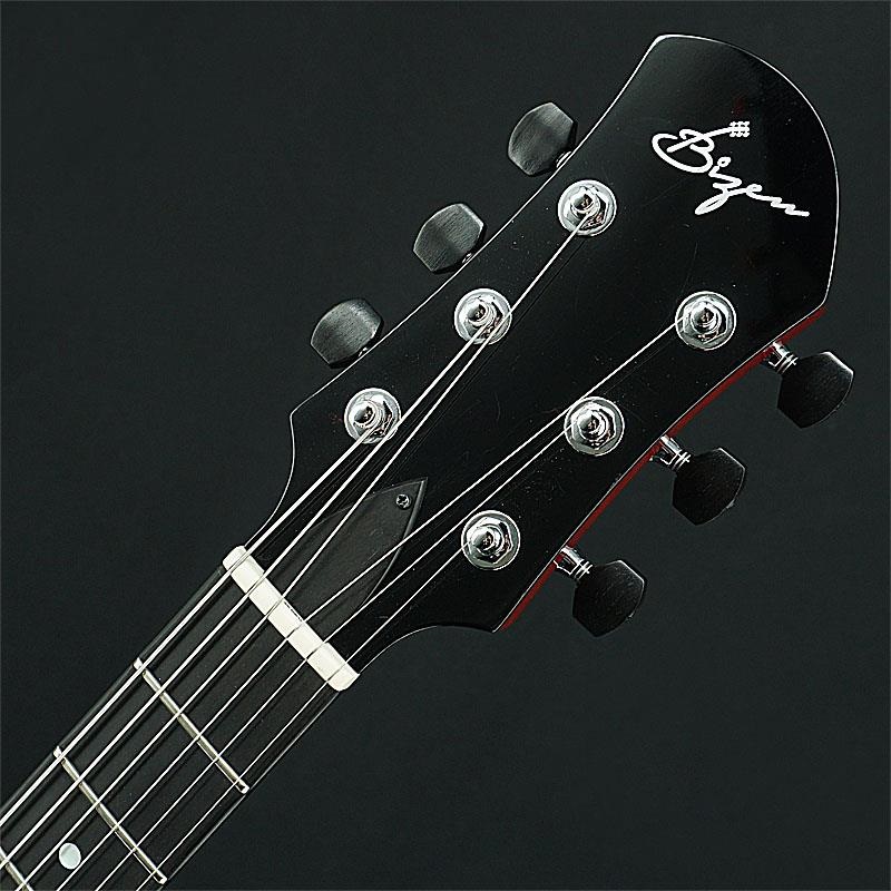フラットなローズウッド・トップにホンジュラスマホガニー・バックのボディ、ネックにもホンジュラス・マホガニーが用いられ指板にはエボニーをセレクト。ボディトップのピックガードの位置にはカーリーメイプルがあしらわれ、ビゼンならではの佇まいを魅せます。ピックアップはオリジナルのハムバッカーを搭載し、良質なウッドマテリアルとのマッチングにより豊かなミッドレンジを持った粒立ちのよいサウンドを出力します。各部の丁寧な仕上げは見た目にも美しく、かつストレスのない優れたプレイアビリティを実現しています。
