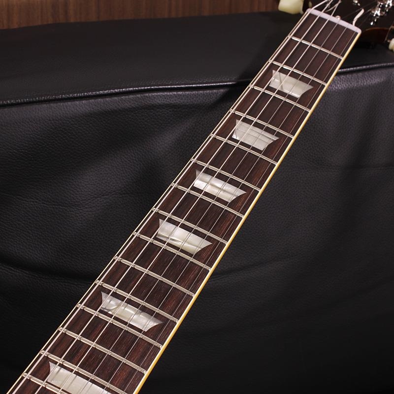 60th Anniversaryモデルの発売時には、ギターのまさに「顔」とも呼ぶべきヘッドの「Les Paul MODEL」シルクスクリーンの色合いの見直しの他、Gibsonロゴデザインもよりオリジナルに近いデザインにリファイン。インレイは指板ポジションマークも含め、着色によるものではなく元々色合いの濃いセルロース素材を使用することで一層雰囲気を高めています。