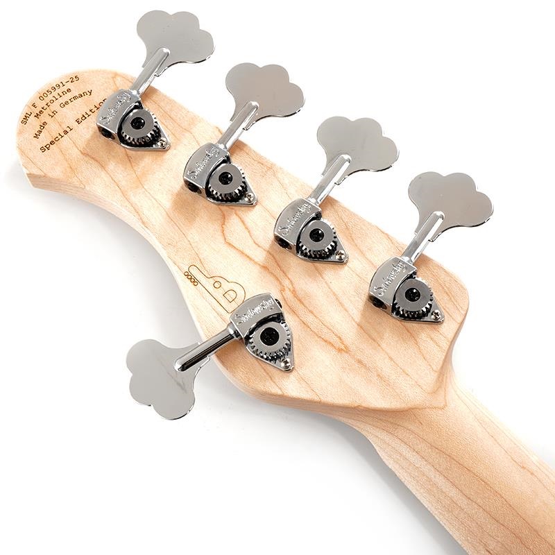 既に高い評価を得ているドイツ製レギュラーシリーズであるメトロラインに、通常はスペック外のフィニッシュ「サンドブラスト」を施したスペシャル仕様です。微細な粒子を木材に吹き付けることにより表面を削り導管を立体的に加工し、更にその強調された導管を活かしたツートーンのカラーにてフィニッシュ。これはWarwickで極一部のモデルに採用されていたカスタムスペックで、世界的に注目されているWarwickイケベオーダーモデルでも数本しか製作されなかったレア仕様となります。通常モデルにはない個性的なルックスに仕上げつつも、従来のクオリティはそのまま(むしろ限定生産の為か、気合の入った作りが感じとれます)で、Sadowskyならではのサウンドをお楽しみ頂けます。