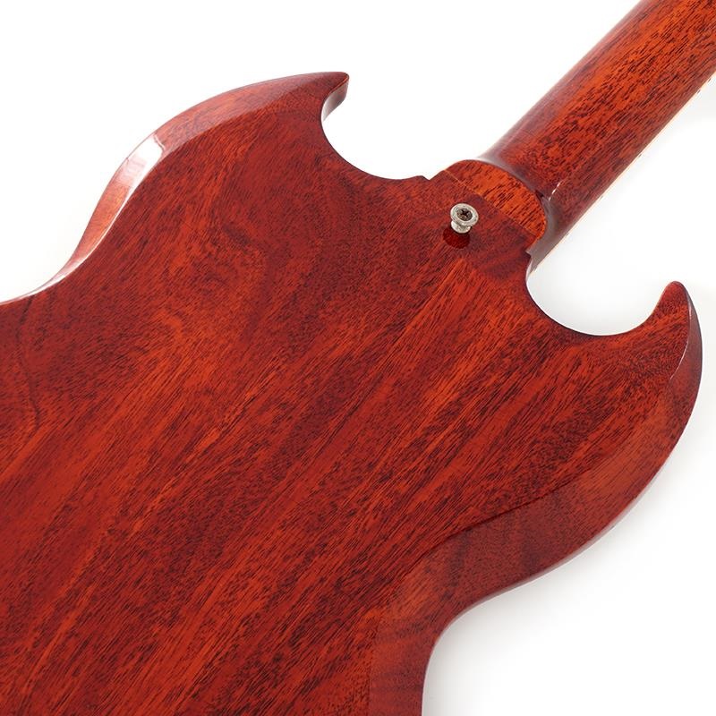 ヘッドのLes Paulロゴが廃され、正式にSGと呼ばれ始めた63年代後期のスペックが再現された当モデルは、アニリンダイフィニッシュよる貫禄のあるチェリーカラー、くっきりと浮かび上がる導管がヴィンテージの風格を漂わせるアダルトな逸品へと昇華させています。
