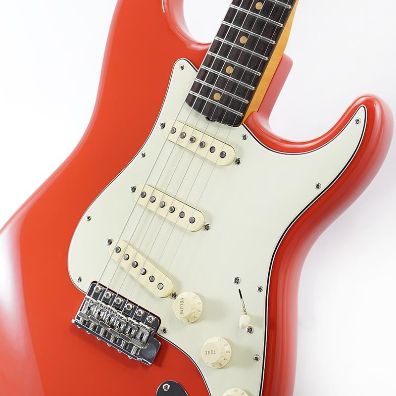 本モデルは限定生産の特別仕様となっており、Custom Shop Fat '60s Pickupsピックアップを3基搭載し、9.5インチラジアスのスラブローズ指板を備えた1961 Cシェイプネックを持ち、現代的なプレイアビリティを持っております。また、コールドロールド(冷間圧延)スチールブロックとベントスチールサドルを備えたPure VintageSynchronized Tremolo、Fender Deluxeチューニングマシン、3plyピックガードなどのプレミアムな仕様が採用されています。