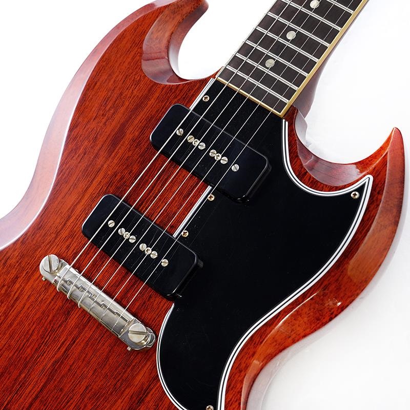 ヘッドのLes Paulロゴが廃され、正式にSGと呼ばれ始めた63年代後期のスペックが再現された当モデルは、アニリンダイフィニッシュよる貫禄のあるチェリーカラー、くっきりと浮かび上がる導管がヴィンテージの風格を漂わせるアダルトな逸品へと昇華させています。
