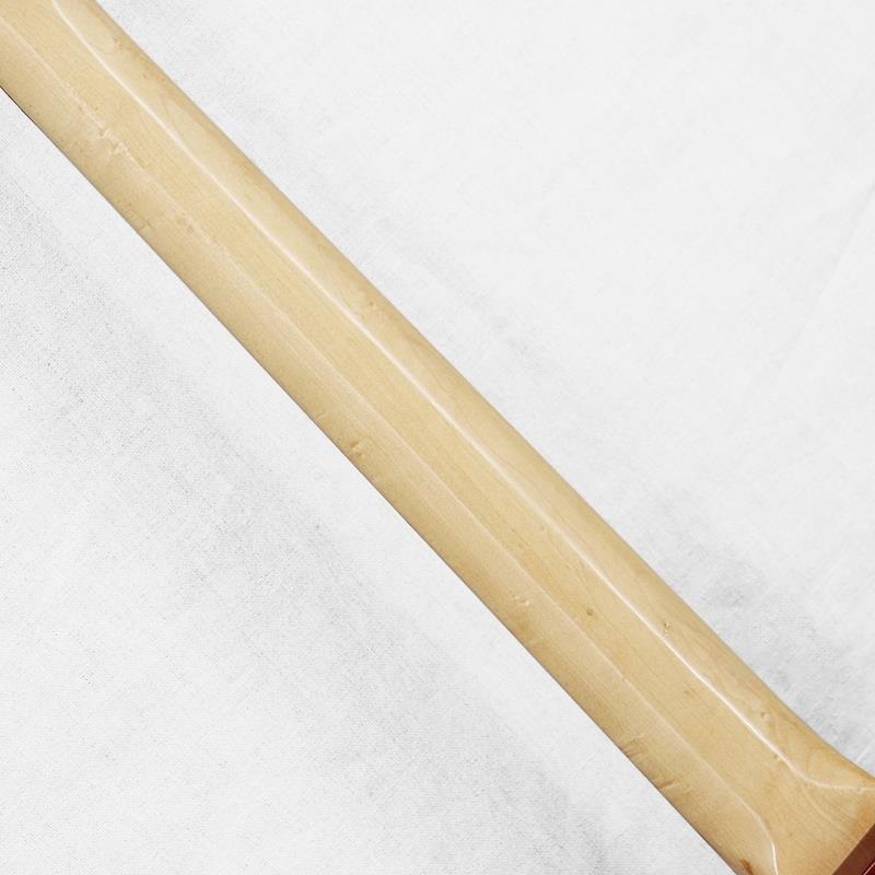 ネック材はメイプル。フィンガーボード材はローズウッド。メイプルにはバーズアイ杢がみられ、特にヘッド付近を彩ります。ヘッドトップやネック裏に打痕がいくつか、金属パーツのくすみがみられ、ボディ同様比較的きれいなコンディションといえるでしょう。チューナーは2弦用のツマミに少々の曲がり、全体的に巻き具合の固さにバラつきはみられますが、しっかりと機能します。ローフレット近辺に減りがみられますが、現状極端な音詰まり等はございません。ヘッド厚15.9mm。ナット幅40.3mm。クセのない比較的しっかりとした厚みのネックシェイプが特徴です。