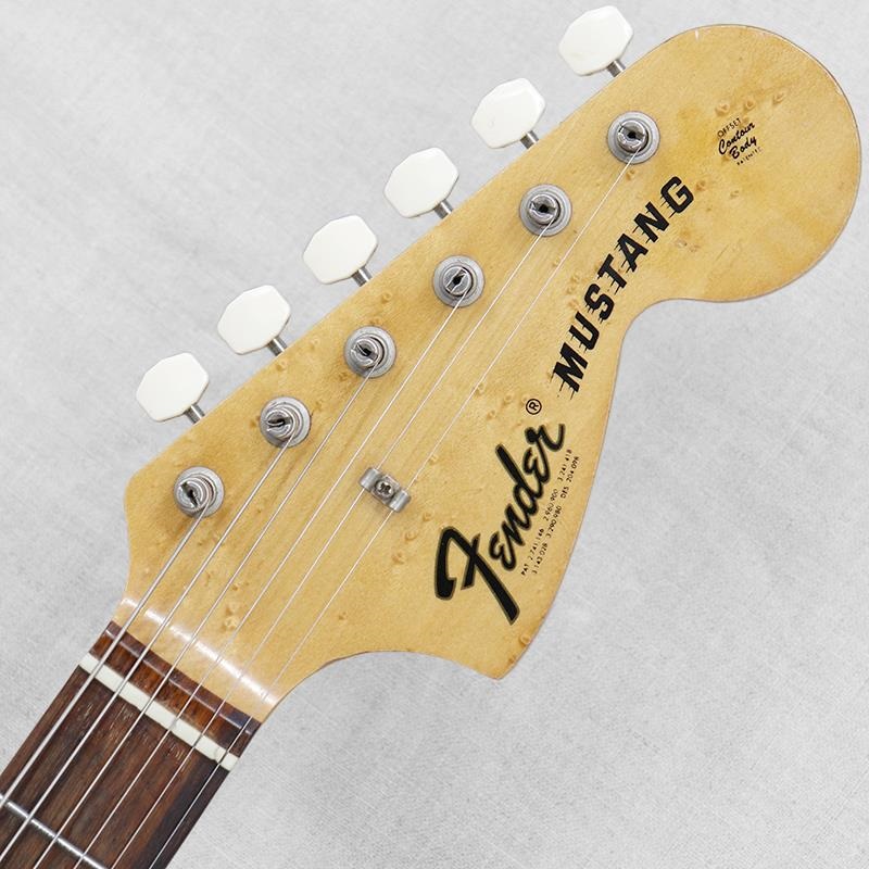ムスタングおなじみのコントロールは【マスターボリューム/マスタートーン/各ピックアップセレクタースイッチ】。ピックアップセレクターのスイッチング次第でインフェイズ/アウトオブフェイズのミックスサウンドを作ることができるおなじみのコントロール。現状ピックガードが外せませんので、POT部のハンダを外した形跡がみられないことに着目しピックアップは当時のままと判断しています。楽器自体の鳴りも良好で、歯切れの良さと、オールドフェンダーらしい艶感と食いつき感のあるトーンが魅力です。