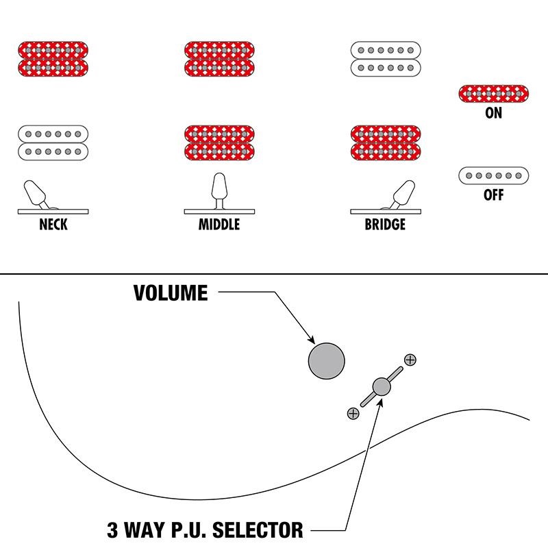 Controls, Pickup selector 1 Volume, 3-way lever switch