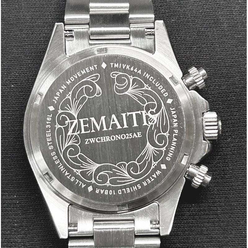 第四弾に搭載したムーヴメントは信頼のTMI (セイコーインスツル株式会社製)のストップウォッチ機構(カレンダー付)のVK64Aを採用しました。