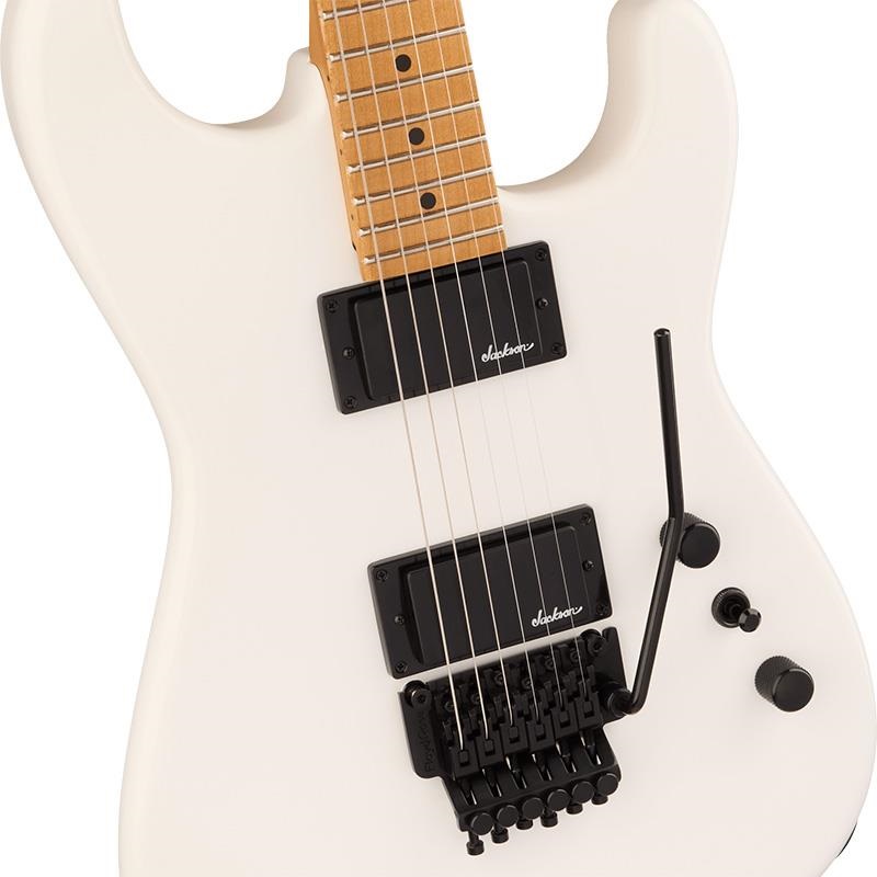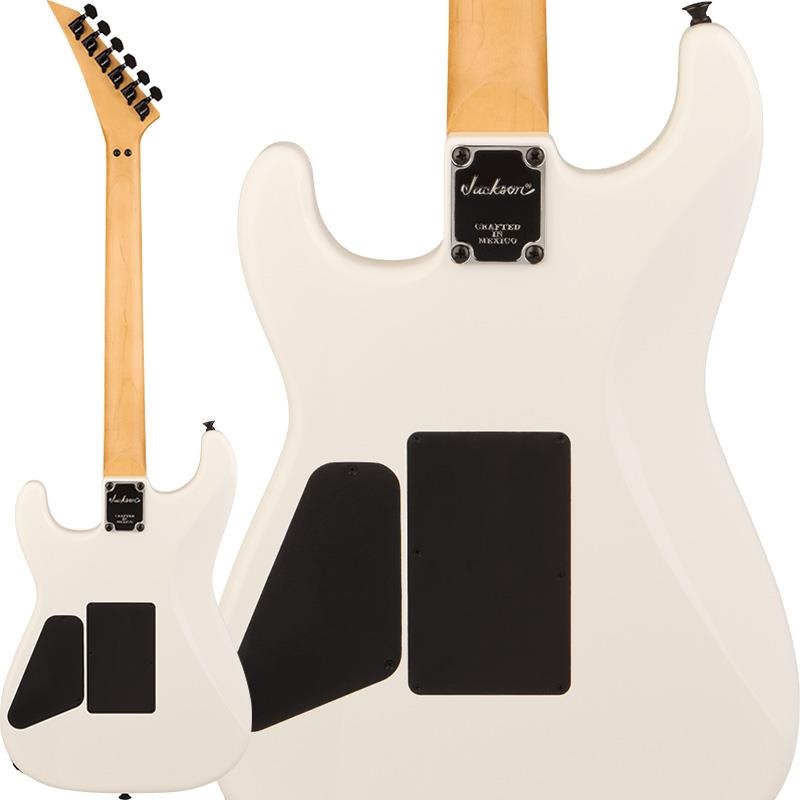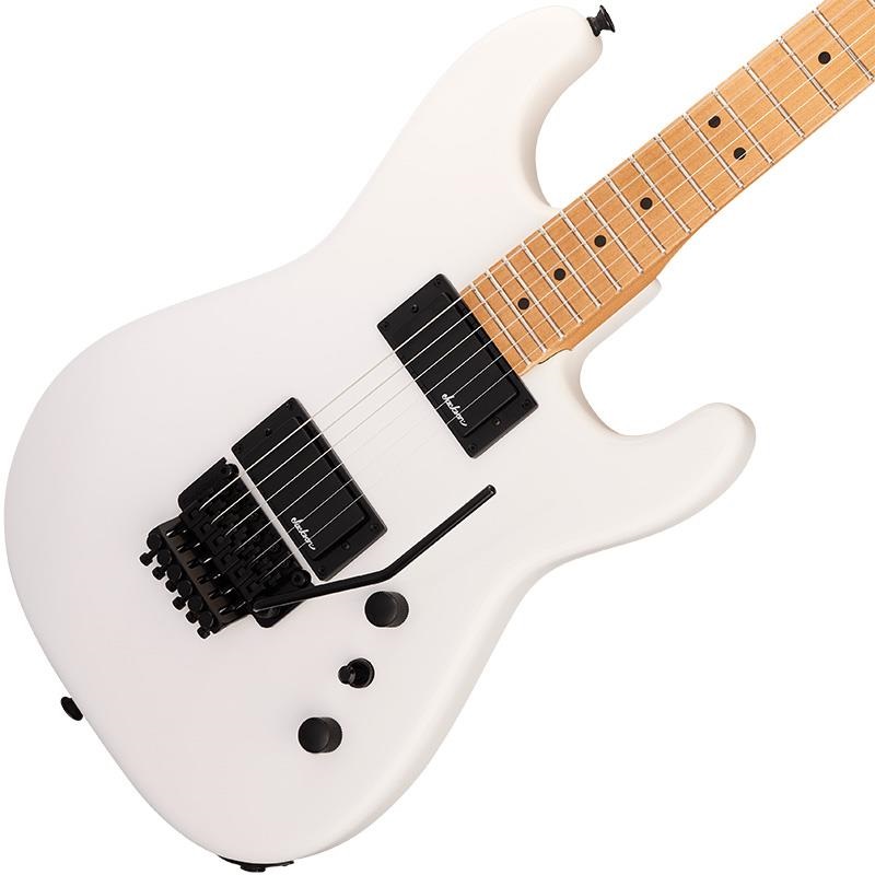 メイプルネックには、美しくエイジングされた木材のような琥珀色の輝きを再現するティント加工が施され、スピードプレイに最適化されたネックシェイプは、指が指板上を駆け抜けられるように設計されています。12~16インチコンパウンドラジアスのメイプルまたはローズウッド指板には大型ドットインレイが施され、トップマウント式のFloyd Roseダブルロッキングトレモロなど、真のメタル/ハードロックファンが求める機能が満載です。かつてJacksonがLAシーンを席巻していた栄光を、今再び体現できます。