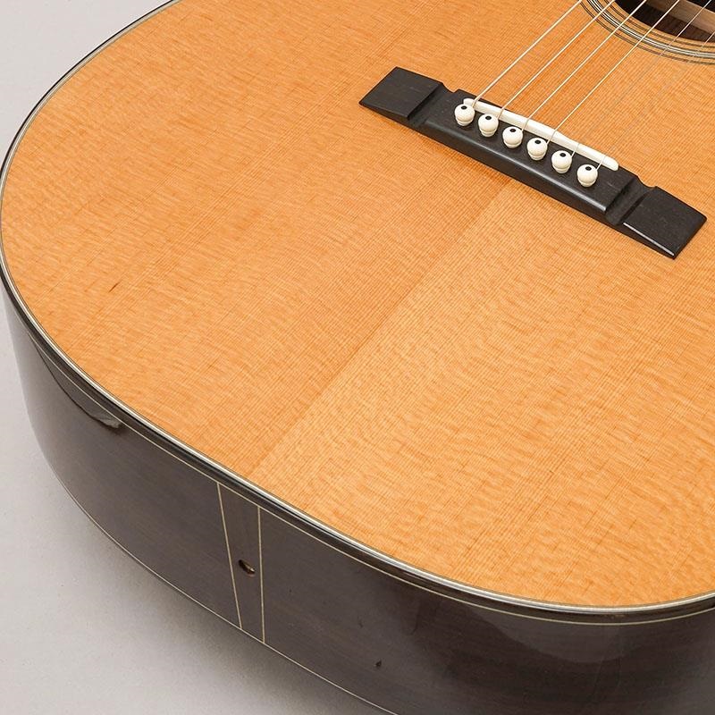 ルックスからは想像できないほどに太くずっしりとした基音で、OMボディながらまるでドレッドノートを弾いているかのような懐の広いダイナミクスレンジ。。それでいてピッキングに対しての反応速度に優れ、軽く鳴らしただけでもボディ全体がしなやかにバイブレーションし、また強くタッチした時には、音像が潰れること無く受け止めてくれますので、プレイヤーのタッチニュアンスに対して限りなく忠実なサウンドバランスが特徴となります。