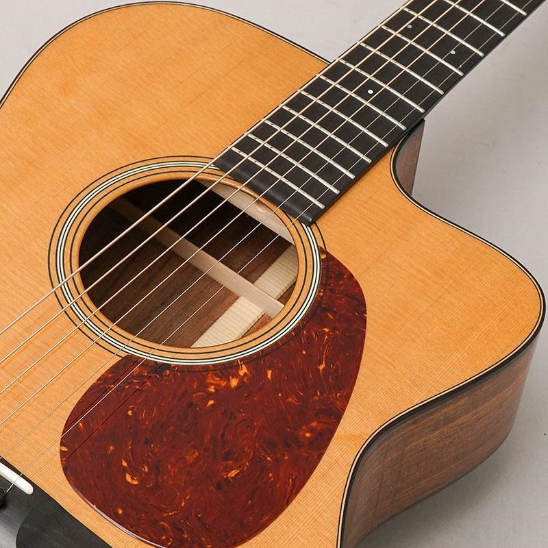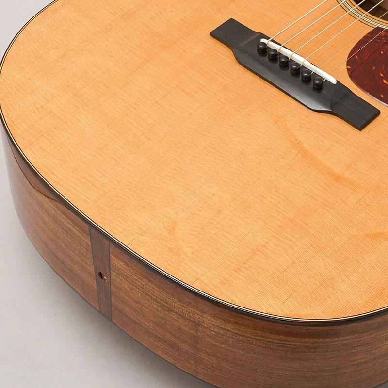 ボディサイズは、ボジョアオリジナルシェイプのGrand Auditorium(GA)を採用しております。Taylor等のGAボディとは異なり薄いボディ厚を持つため、大変抱えやすいことが特徴です。また、OMや000サイズよりも、ふくよかな低域と立ち上がりの速いピッキングレスポンスを持ちますので、フィンガースタイルからフラットピックスタイルまで幅広くお楽しみいただけます。