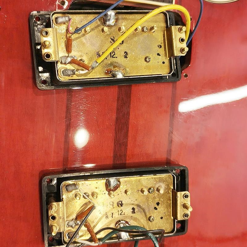 コントロールは【2ヴォリューム/2トーン/3wayピックアップセレクタースイッチ】に、各トーンPOTには伝統のバイサウンドスイッチを搭載。ピックアップはオリジナルのセミオープンタイプハムバッカーが2基。バイサウンドスイッチとSGピックアップの組み合わせで、厚みのあるハムバッカーからシャープなシングルコイルトーンまでカバー。無骨さと器用さを兼ね備えた良品ですね。