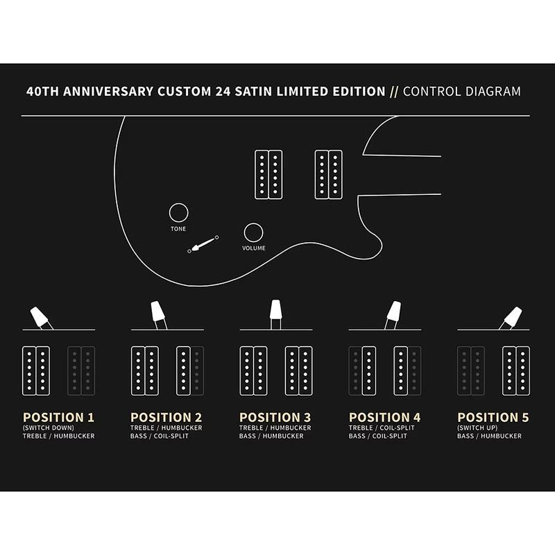 本モデルは、PRSの40周年を祝うプロジェクトの一環として、全世界500本限定で生産され、各個体にはポール・リード・スミス直筆サイン入りの40周年記念証明書が付属します。