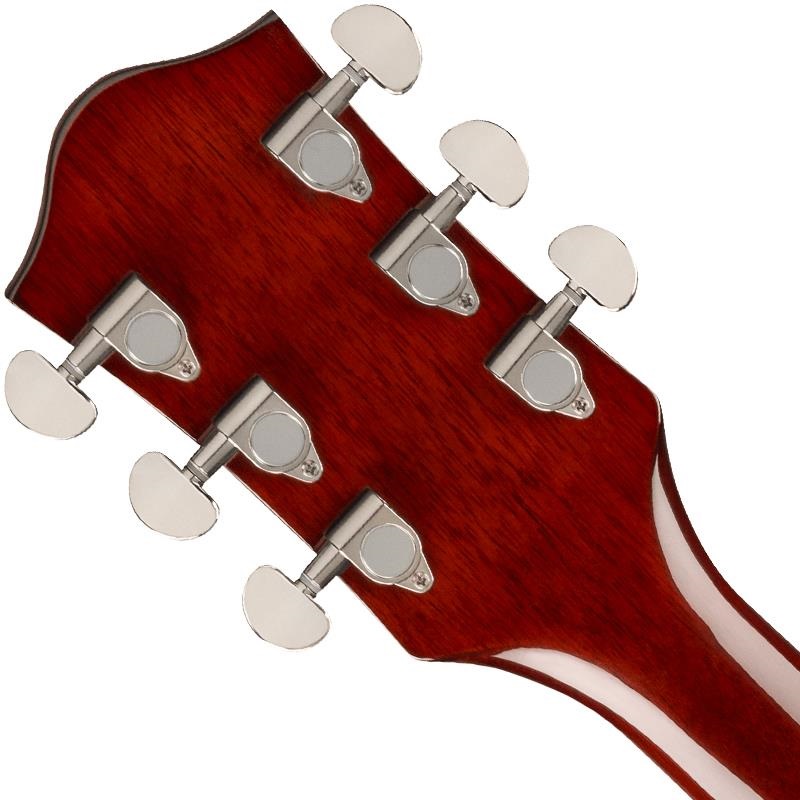 G2622 Center Blockは、アーチドメイプルボディに、新しいセンターブロックデザインを採用しています。この新しいセンターブロックは、軽量で快適な演奏性と存在感のあるフルでリッチなサウンドを両立するように設計されており、アタックとサスティンを向上させ、優れたフィードバック抑制効果を、重さを感じさせない快適なギターにまとめ上げています。