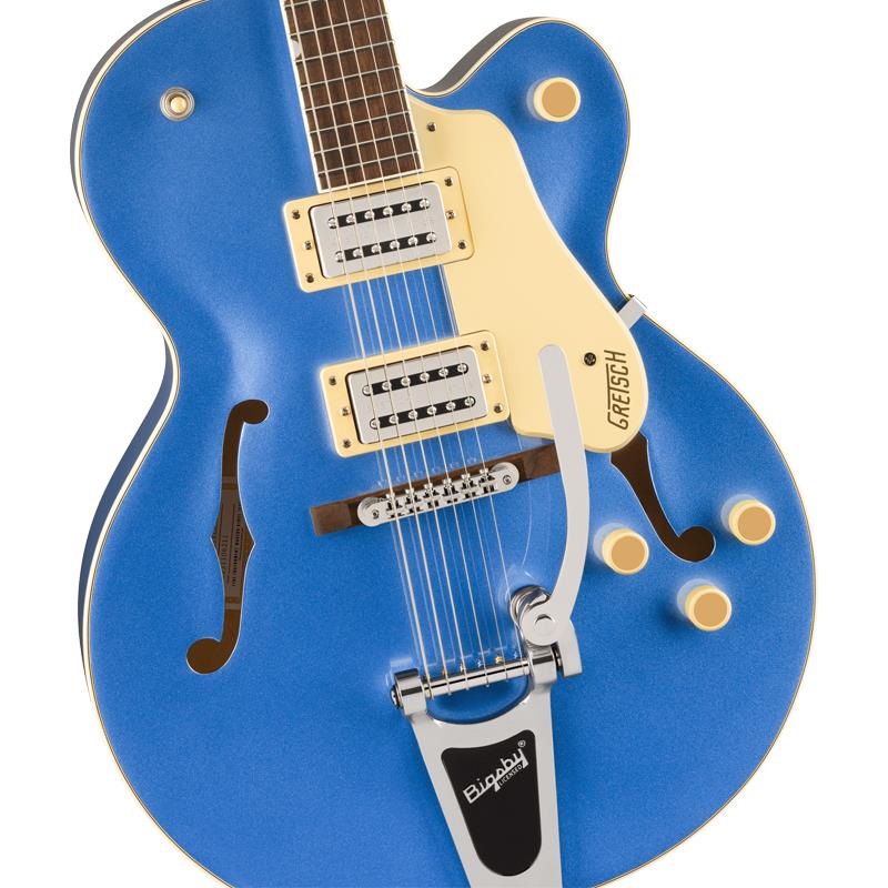 G2420T Streamliner Hollow Body Single-Cut with Bigsbyは、豊かな響きと深いレゾナンス、スケール感のあるビッグボディサウンドを実現するパラレルトーンバーを備えたフルホロウ構造のアーチドメイプルボディを採用しています。