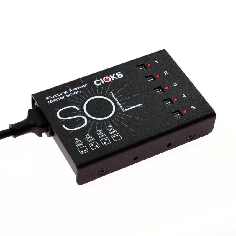 デンマークの CIOKS 社は、1991 年からギタリストやベーシスト向けにエフェクター(ペダル)専用の電源を販売し、その確かで高度な機能で定評を築いてきました。CIOKS 社製プロ向け電源装置シリーズ「Future Power Generation」を代表するこの電源装置 SOL は、高電流の 5 系統出力を装備しています。