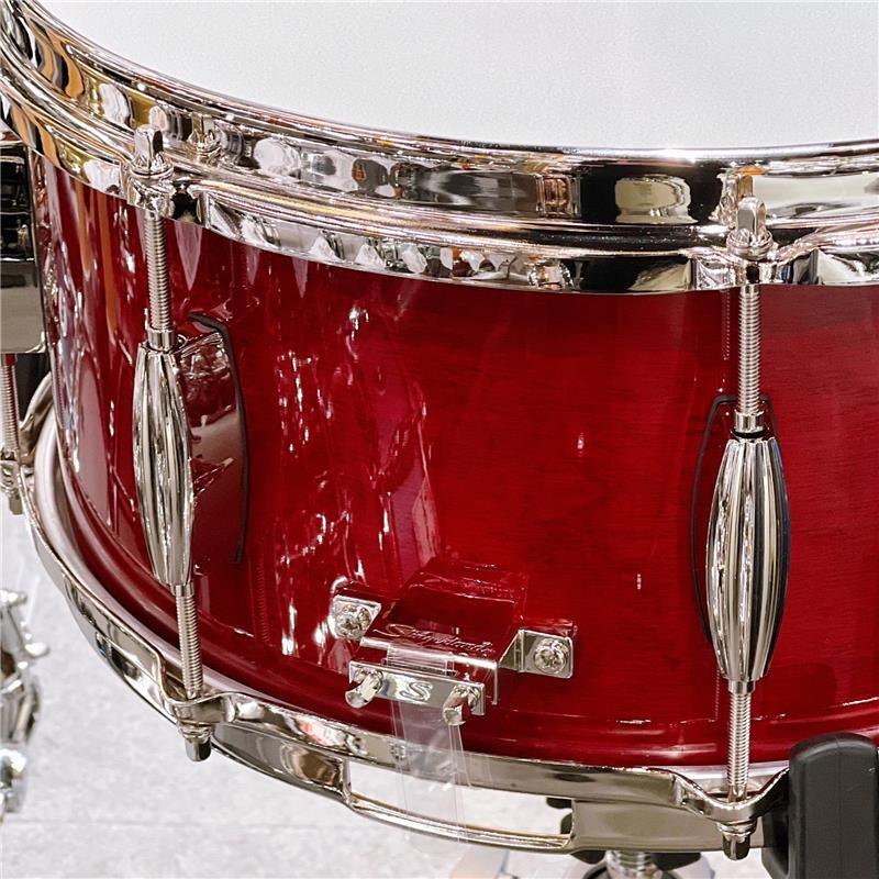 ほぼ全てのハードウェア・パーツでニッケル・メッキを採用しており、1970年代のモデルを模した楕円型のバッジやクラシックなビーバーテイル・ストリームライン・ラグと相俟って、ヴィンテージの質感を醸し出した風格あるスネアドラムに仕上がっています。