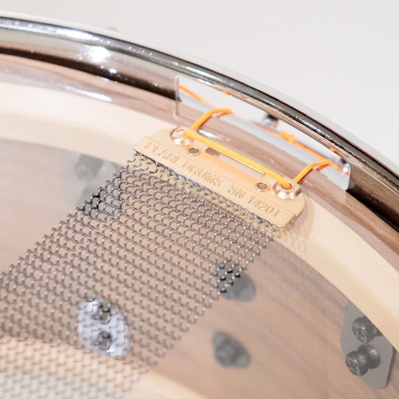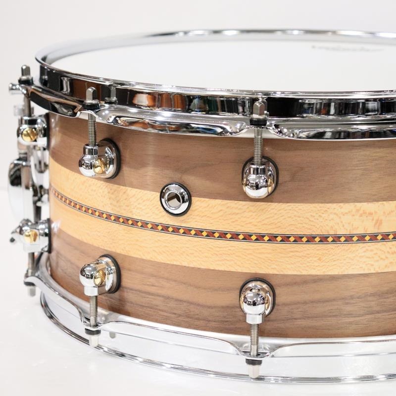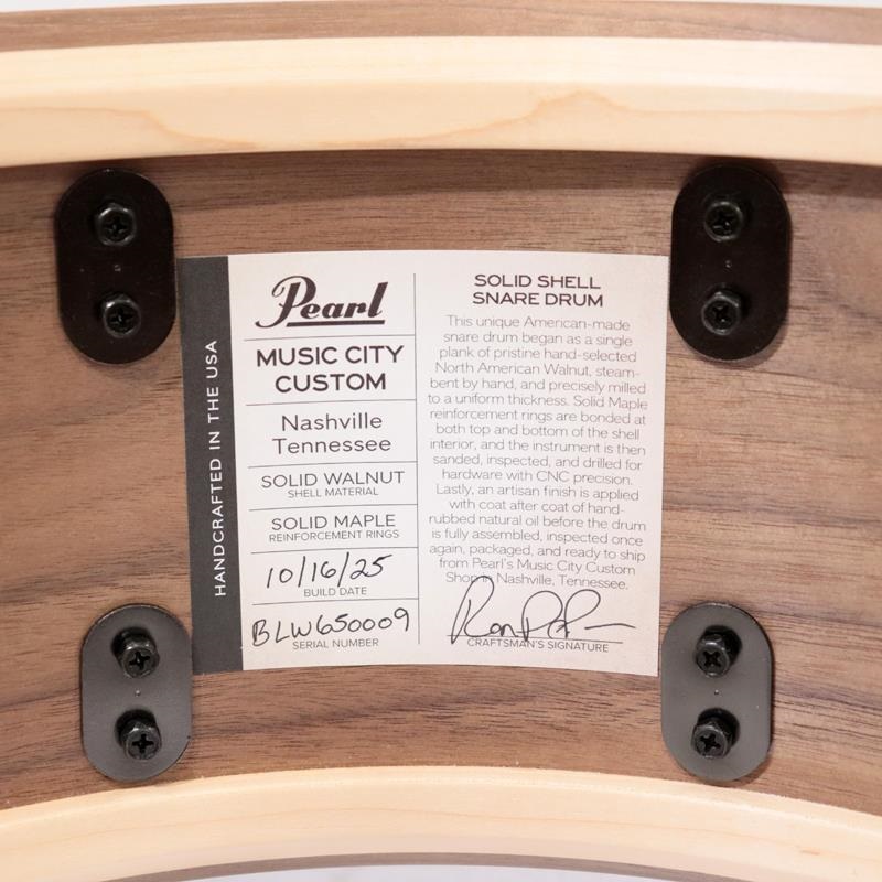 Pearl USAナッシュビルの専用工房で一台ずつ丁寧に仕上げられるソリッドシェル・スネア。一枚板(単板)ならではの自然な鳴りと豊かな響きを備え、2025年冬、このたび国内で厳選入荷。8mm厚に削り出されたシェルにはメイプルのレインフォースメントを組み合わせ、強靭さと芯のあるサウンドを実現。材はウォルナット1種、アッシュ2種から選択でき、ウォルナットの濃厚な低域、アッシュの力強いアタック、それぞれの木材が際立つ個性を放ちます。外観は木目を生かしたフィニッシュで、精緻な加工と職人の手仕上げが融合した、比類なきクラフトマンシップが息づく特別な一台です。