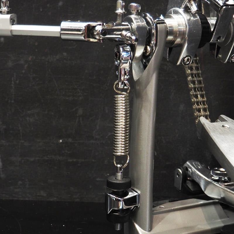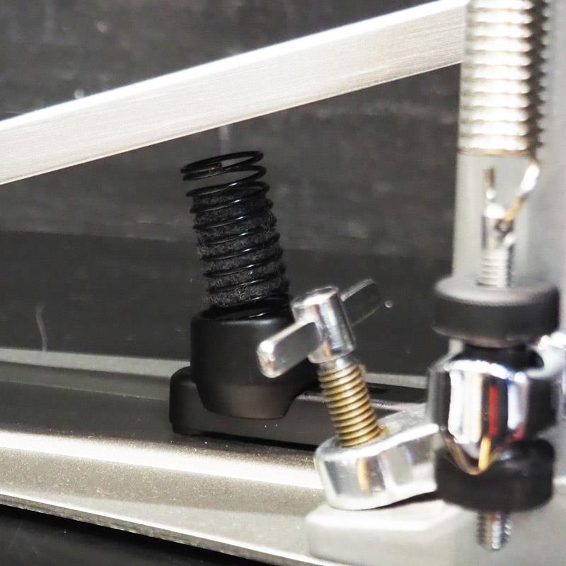 コブラコイルは、踏み切る直前でフットボード裏側に触れる事で、踏み込みに影響を及ぼさずにフットボードの返りをアシストします。スプリング部は前後に移動可能で、当たり始める位置を微調整するとフットボードの返りの度合いを変更することができます。