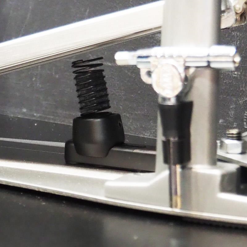 Speedo-Ring との組み合わせによるビーター/ フットボードアングルの調整機能。フットボードの角度に影響を与えることなく、ビーターがバスドラムのヘッ ドに当たるまでの距離を無段階で調整可能です。