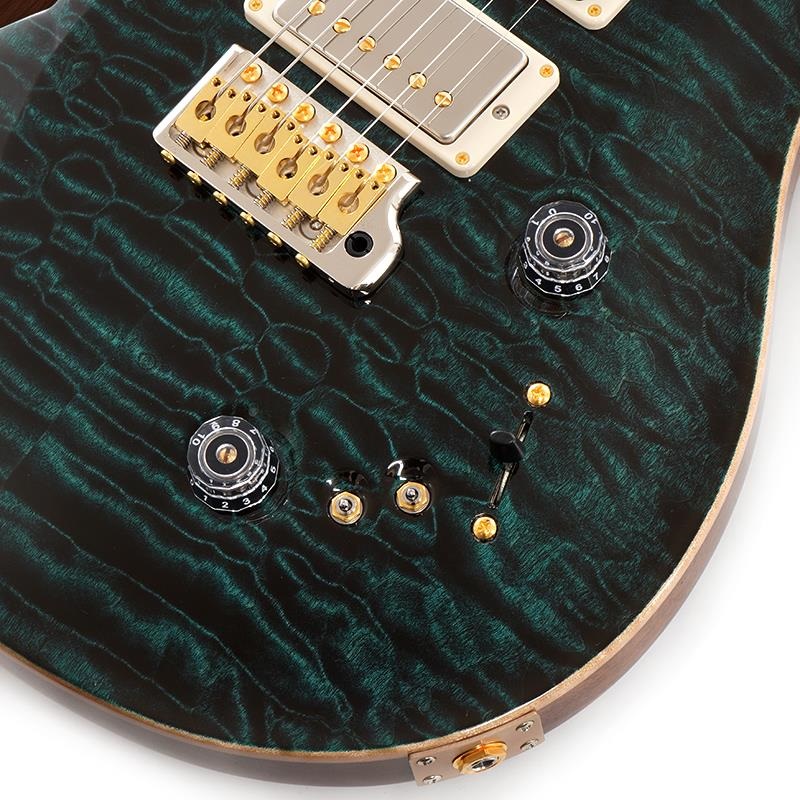 PRSブランドの中で最高ランクのPSグレードの次のグレードに位置するアーティスト・グレードのトップ材は、眺める角度によって表情が変わり、立体的な奥行きを感じさせる杢目が大変美しく、眺めるだけでも楽器の価値を感じることが出来る大変素晴らしい仕上がりとなっております。