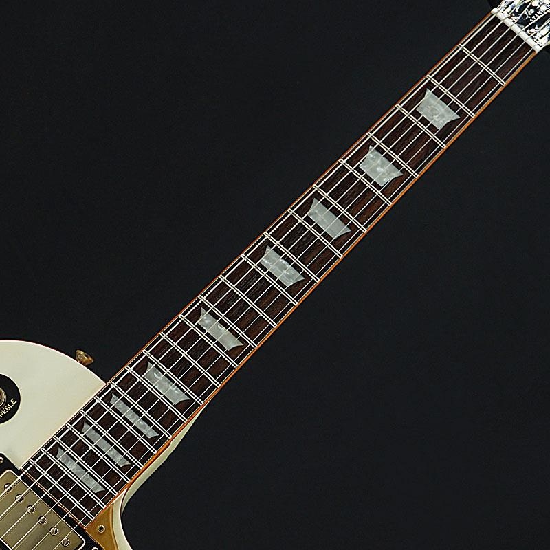 こちらは高級感のあるルックスが印象的なレスポール・ロイヤル。パール・ホワイトのカラー、スパークル・ゴールドのバインディング、そしてゴールド・パーツの採用による他のモデルにはない高級感のあるルックスが特徴的。レスポールの持ち味である太く歯切れの良いサウンドはそのままに気品溢れる逸品です。