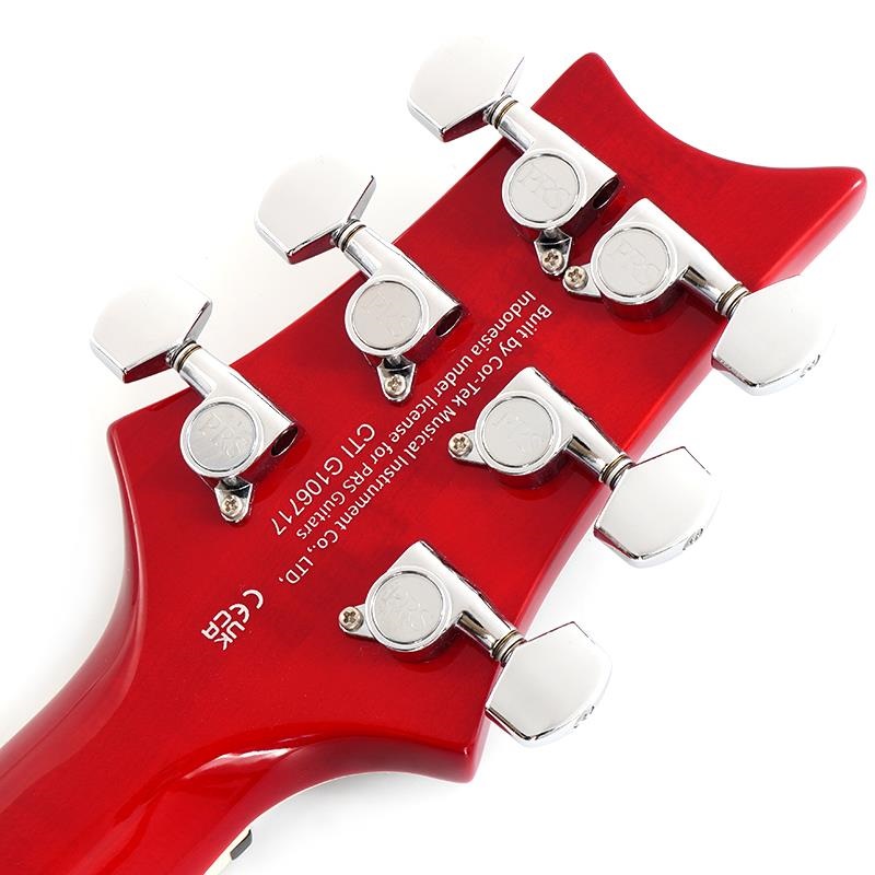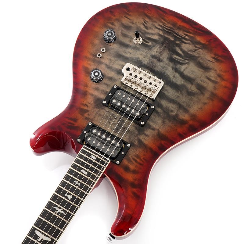 SE Custom 24-08 Quiltは、オリジナルのCustom 24のメイプル・トップ、マホガニー・バック、 ローズウッド指板、24フレット、25インチ・スケール、バード・インレイ、2基のハムバッカー、ヘッ ドのシグネチャー・ロゴ、そしてPRSのオリジナル・トレモロといった基本スペックはそのままに、 ボディ・トップにベニアのキルト・メイプルが施されています。 SE Custom 24-08 Quiltは、COREシリーズのCustom 24-08同様、2つのコイルタップ用のミ ニトグルスイッチを搭載し、各ピックアップを独立してシングルコイル・サウンドに切り替えられる ことでSE Custom 24 を上回る8種類のサウンド・ヴァリエーションを実現し、ボディ・トップに 鮮やかなベニアのキルト・メイプルが使われています。