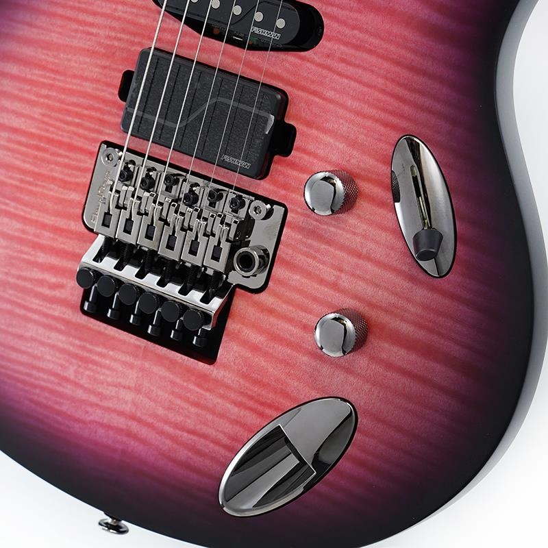 指板にはエクリプス・ドラゴン・インレイが施され、PRSのトレードマークでもあるカッタウェイも本モデル専用に特別なカスタマイズが施され、ハイポジションへのアクセスを極限まで高めています。ブリッジには、Floyd Roseロッキング・トレモロを搭載することで、激しいアーミングでも安定したチューニングを実現。