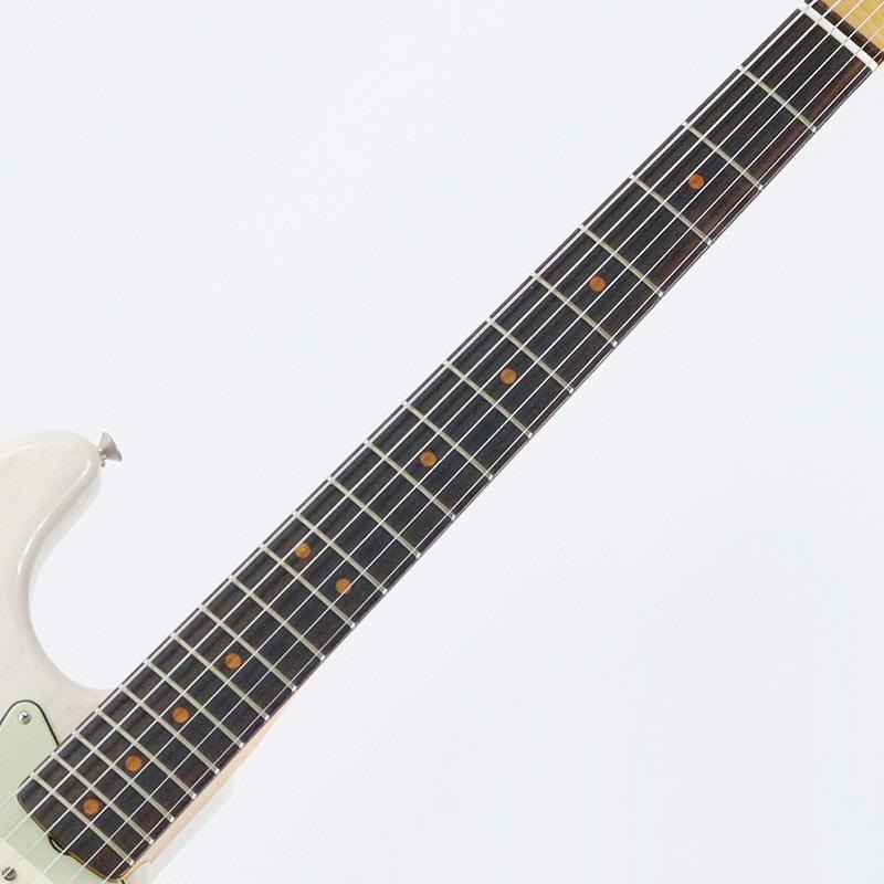 指板はラウンド貼りのローズウッドとなり、ビンテージより浅い9.5ラディアス、フレットには幅が狭く高さのあるナロー/トールサイズを使用。ボディ&ネックフィニッシュはビンテージ同様にオールラッカー・フィニッシュ。ボディは規則性の無いウェザーチェックが入っており、若干ツヤの有るAll Lacquerフィニッシュ。ネック裏は1F~12F周辺まで剥がされており、木肌の質感が滑りの良い弾き心地。