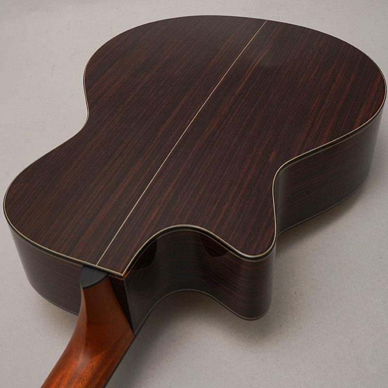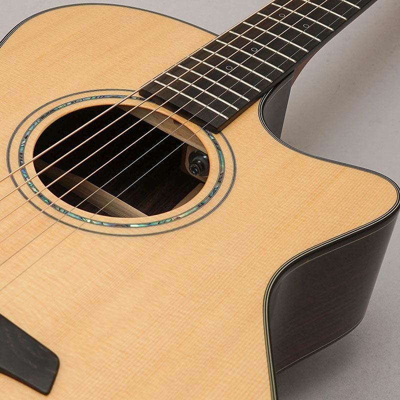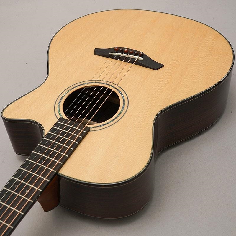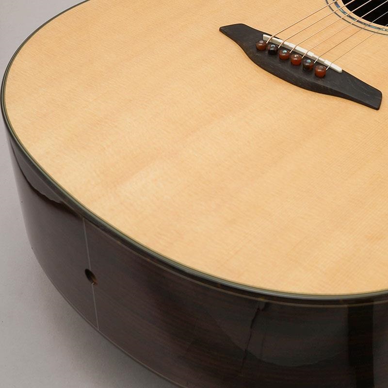 トップ材はAAAグレードのシトカスプルース、サイドバック材はAAグレードのインディアンローズウッドを採用。