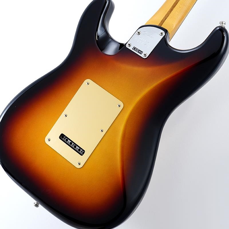 American Ultra II Stratocasterは、厳選されたアルダーボディに深めのボディコンターが施されています。クォーターソーンメイプルネックはModern Dネックシェイプで、ネックバックは触り心地の良いUltra Satinフィニッシュで仕上げられています。10-14インチコンパウンドラジアのエボニーまたはクォーターソーンメイプル指板は、エッジを丁寧にロールオフ処理したUltraロールドエッジが採用されており、ミディアムジャンボフレット、蓄光式Luminlayサイドドット、Graph Tech TUSQナットを装備しています。テーパードネックヒールと深いボディコンターにより、ハイポジションへの容易なアクセスが可能です。