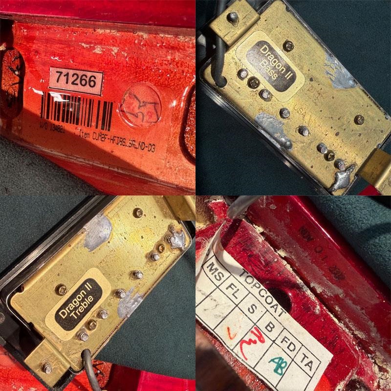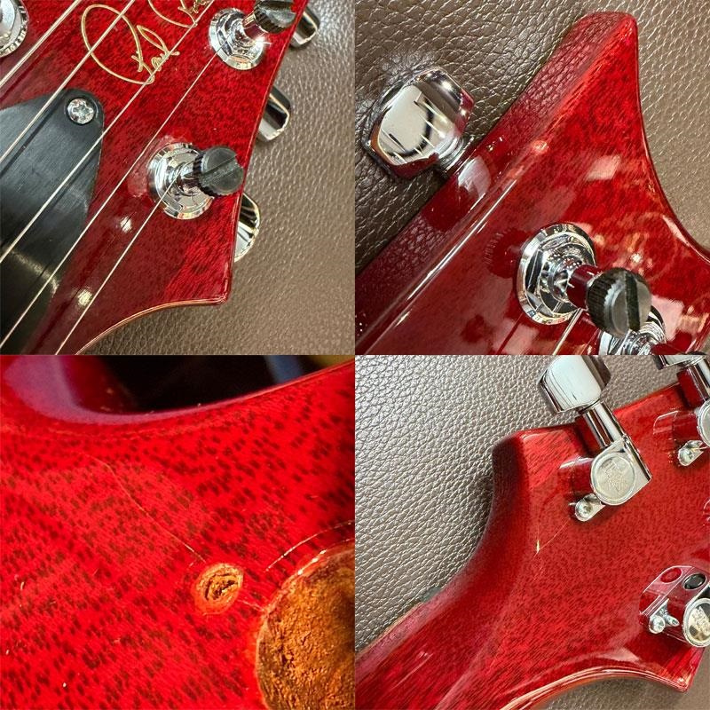 当個体状態といたしましては、エンドピン交換が施されております他、ボディ全体に経年相応のスレキズ、弾きキズ、うち傷、欠け、ハードウェアのくすみやさびが御座いますプレイヤーズコンディションとなっております。しかし、P.R.S特有の塗装の白濁は見受けられずフレットは7割程度の高さを残し、ネックコンディションやトラスロッド、電装系含め演奏面で問題はございません!まだまだ末永くお付き合いいただける1本としてお迎えいただけます。この機会に是非ご検討ください!