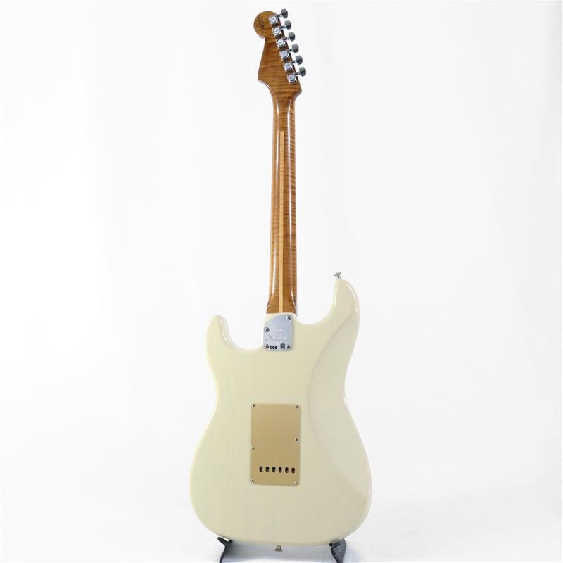 アッシュボディにフレイムの杢目が美しいソフトVシェイプ・ネック、立ち上がりの良いアタッキーなピックアップのキャラクターで、演奏性の良さの中に'50sの雰囲気が落とし込まれたスペックのストラトキャスターとなっております。