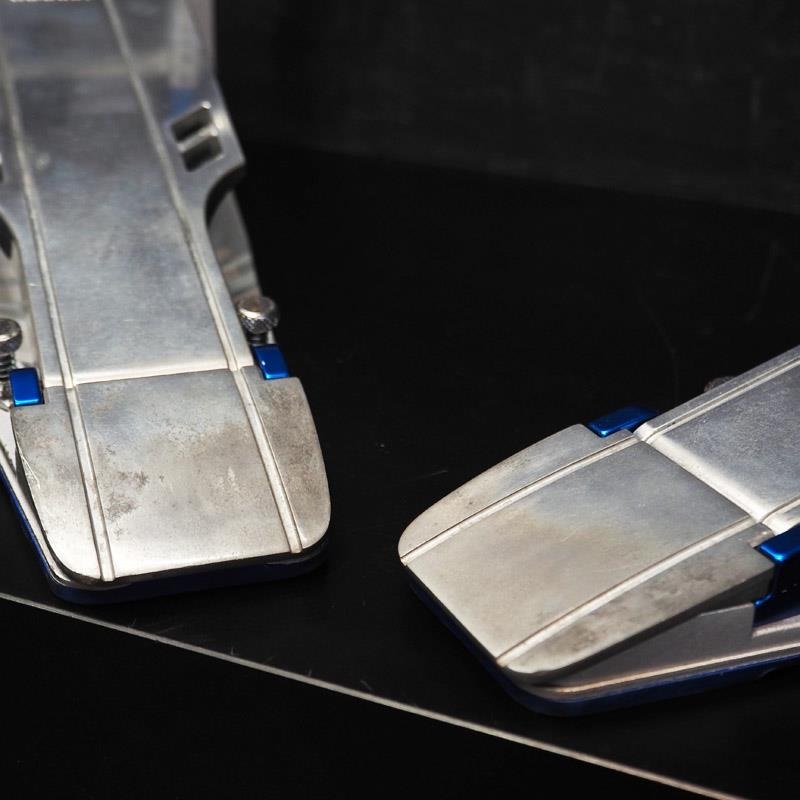 ヒールポジションを低くする設計を採用。ヒンジ部分には高精度にて加工されたカバー(青色のパーツ)を搭載することでフットボードの安定性を向上。スムースなペダルワークを可能としました。